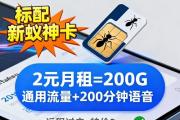 稀缺到靠抢!移动新蚁神卡长期2元月租,200G通用流量+200分钟语音永久享,移动神卡本就稀缺,这种“低月租+大流量+语音”配置更是难得,无隐藏消费、支持远程过户,2xxx特价在售,自用省一辈子话费!