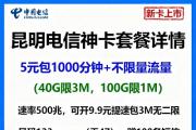 云南电信神卡疯抢!昆明5元=千分钟+不限量+提速自由