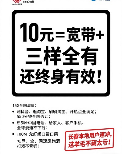 《轻松实现通信自由!长春联通 10 元终身套餐,流量通话宽带全搞定》