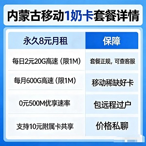 告别隐形消费!内蒙古移动奶卡,8元月租,透明靠谱