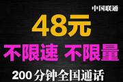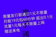 限量发行联通日1元不限量套餐联通虚拟号段19元月租赠送60全国分钟 超出0.1元流量每天1元不限量上网无上限【测试阶段个别地区不限量不限速 低调使用】【以后是否限速不确定】公众号激