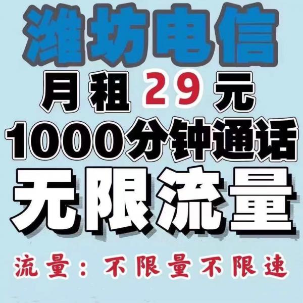山东潍坊面交正规电信29月租1000分上网不限量不限速,数量有限,客服可以任意查套餐资费