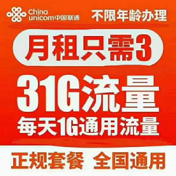老人孩子最实用联通上网卡 每月3元包31G全国流量