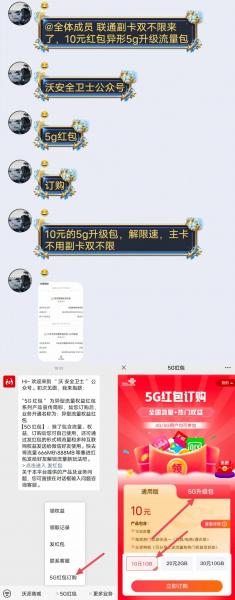 联通副卡双不限来了,10元红包异形5g升级流量包