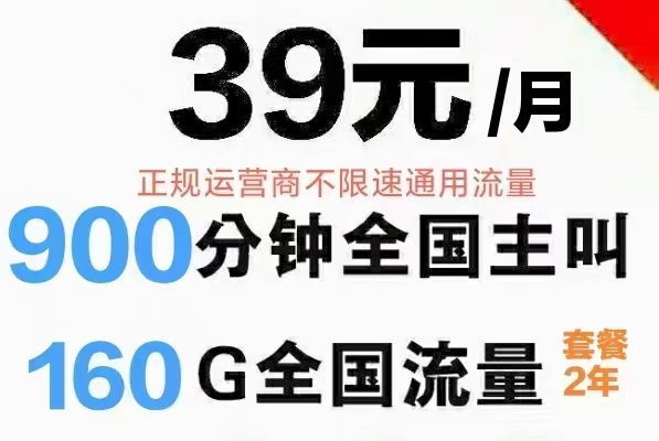 1、39元900分钟+160G全国不限速通用流量(24个月)24个月后60G流量(一共48个月).......开新卡和携转[礼物]