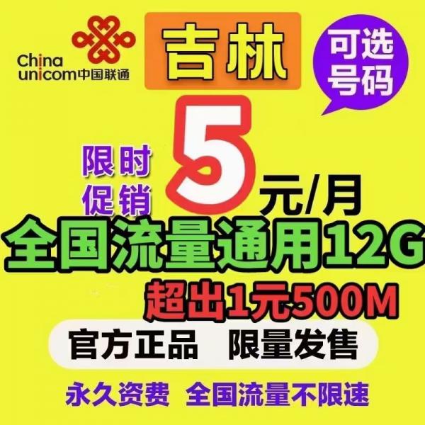 绝版联通超低月租5元包12G全国流量