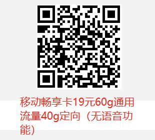 移动畅享卡19元60g通用流量40g定向(无语音功能)
