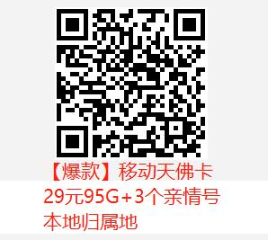 【爆款】移动天佛卡 29元95G+3个亲情号本地归属地