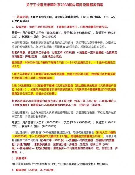 关于联通新王卡限定版额外享70GB国内通用流量服务预案