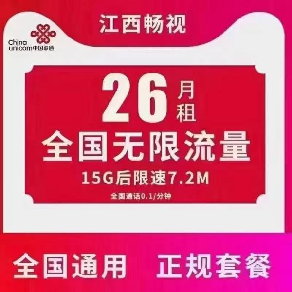畅视.26元一个月.15g之后限速7.2.兆.无二限.一个月几千g没问题.(实测2-3人使用.抖音.快手无压力)需要的私来就一张.包远程过户.坐到家了就等卡就可以 .可以开附属卡.一张变两张(价格2xxx)