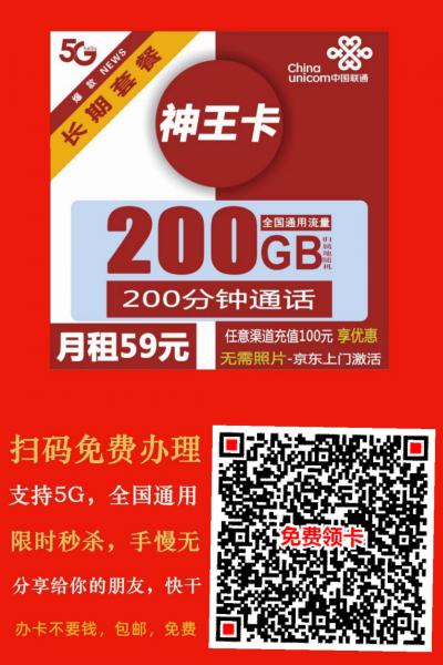 联通天广卡神龙卡39元200G通用+200分钟通话 长期流量 重点:返费完事 长期59元大流量