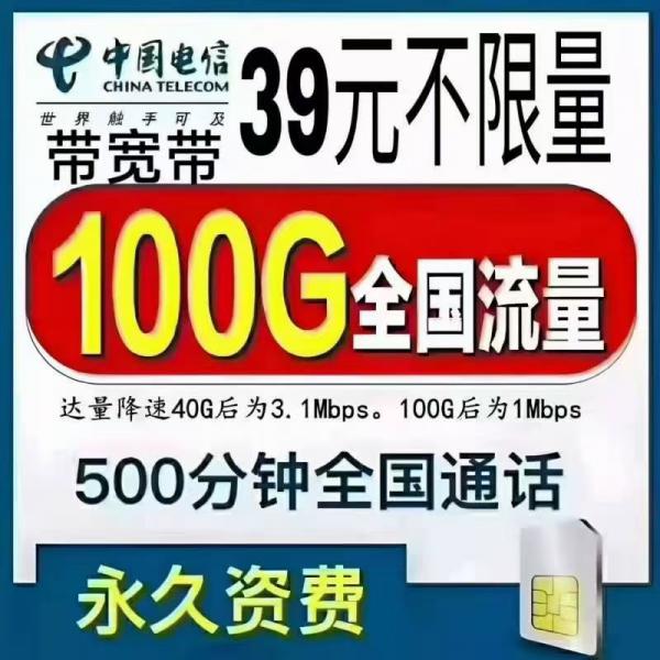 正规电信无限流量卡💰几百块 月租39包无限流量500分钟