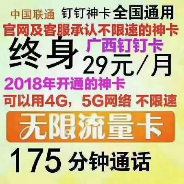 广西联通29元钉钉官宣神卡不限量不限速赠送175全国分钟套餐介绍与全国各地手拉手过户和远程过户信息