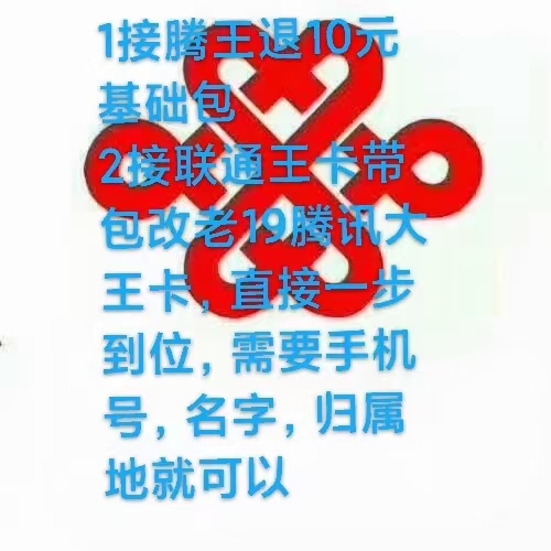 1接腾王退10元基础包 2接联通王卡带包改老19腾讯大王卡,直接一步到位,需要手机号,名字,归属地就可以