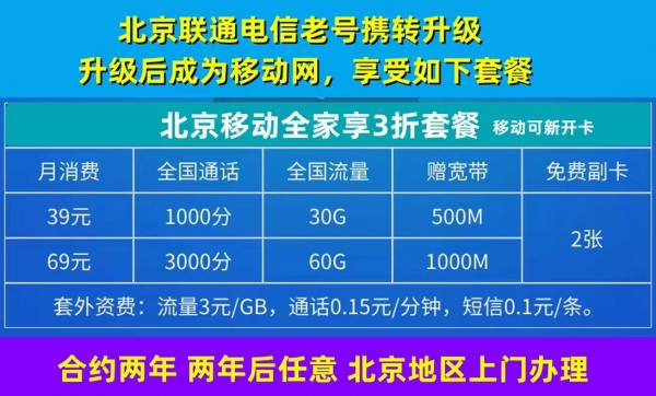 一:39元包30G流量+1000分钟通话+500兆宽带