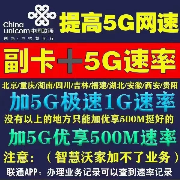 全国联通副卡加优享500M 加5g极速(1Gbps)速率,