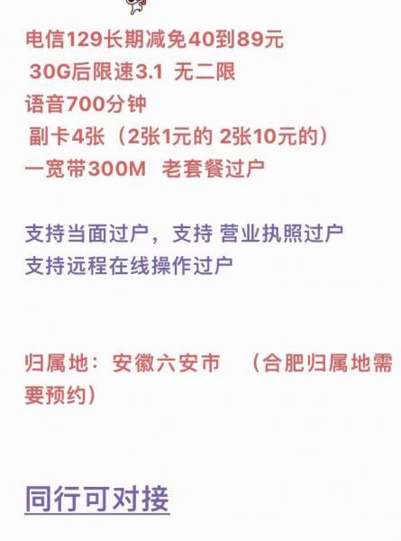 电信129长期减免40到89元30G后限速3.1 无二限语音700分钟