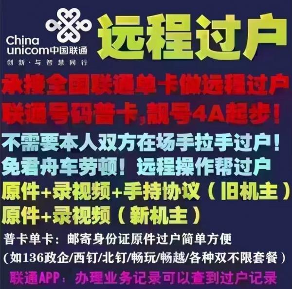 承接全国中国联通号码普卡远程过户
