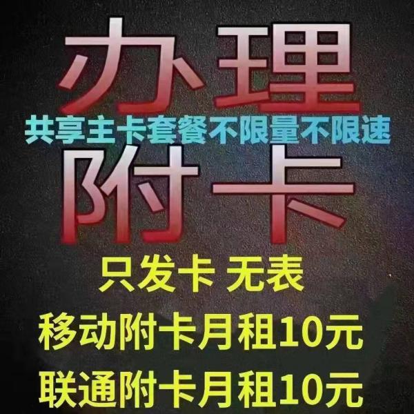 全国移动代开一号双终端10元月租附卡,实现共享主卡不限量不限速,全国各种移动不限速套餐,青海阀门卡,内蒙古移动奶牛,广州老无限,都可以代开成不限量不限速,主附卡一个号码,移动附卡带5gsa网络!