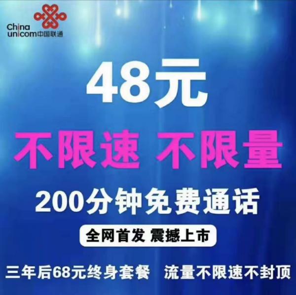 四川联通48元随意享,200分全国通话,前三年48,以后长期68月租,官宣流量包,退限速的,5g可以用nsa。广东惠州市内过户!价格2×××