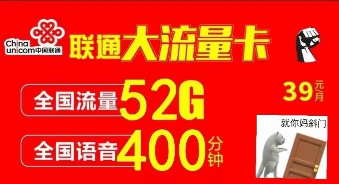 1:39元400分钟,52G全国不限速流量(2年资费)