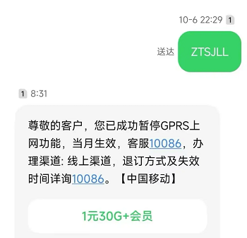 发送“ZTSJLL”到10086,办理暂停GPRS功能业务。办理后就上不了网了,手机卡依旧是5G信号不影响正常通话和短信。