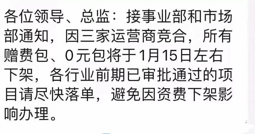 三大运营商 据说15号下架 所有优惠包 业务包